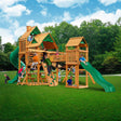 Schedule a break and escape to The Treasure Trove Swing Set with Natural Cedar Playset by Gorilla Playsets! This swing set is overflowing with flat-out excitement in every corner! Kids can play on the covered decks, explore the clatter bridge and tower, or enjoy the 7 ft Tube Slide. The play decks are protected with tongue and groove wood roofs. This premium cedar wood playset is pre-cut, pre-sanded, pre-stained and ready to assemble in your backyard. The entire playset is finished in a beautiful amber stain. Gorilla Playsets' cedar naturally resists rot, decay, and insect damage.