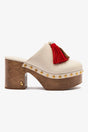A retro touch with a modern twist, the Miso blends a bold wooden sole with playful multicolor tassels that bring movement and personality to every step. Soft leather ensures instant comfort, while gold studs add that unexpected detail that makes all the difference. A statement shoe on its own — just slip it on and let your look do the talking.