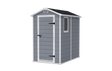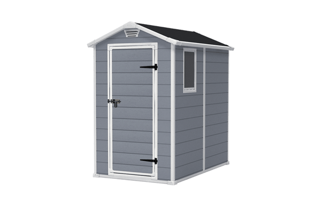Always room for storage. The attractive Manor 4×6 is a narrow and extremely durable storage shed designed to fit right into that small space alongside your home. Made of innovative lightweight panels “H” shaped, double- wall structure constructed to provide extra strength to withstand heavy duty weather and are built to last. The Manor 4×6 is a maintenance- free shed, no varnish or paint is needed. It features integral floor panel and ventilation that keeps your stored items clean and dry, a fixed window for lots of natural light and is lockable for extra safety and secure.